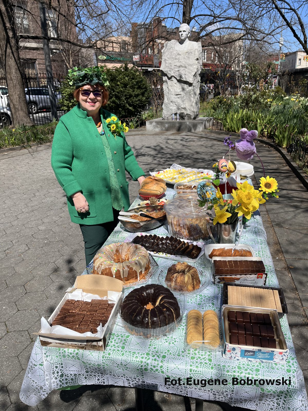 Judging by the opinions of those present, the idea of an Easter lunch at the monument of Father J. Popiełuszko in Greenpoint was very positively assessed and a proposal was made to continue it. The artistic setting of the picnic was the fancy, colorful headgear of many ladies and men. The weather was good for us and so was the turnout.