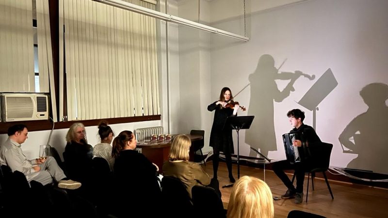 March 9, 6 pm at the Polish and Slavic Center there was an event celebrating CD Release ” Union Square” on Albany Records by Jakub Polaczyk a polish composer and pianist based in New York City. During the evening there was a premiere presentation of the movie: “A Conversations with Jakub Polaczyk by Dennis Woytek”. the interviews were taken 2013-2023. Dennis Woytek a filmmaker from Pittsburgh, retired Assistant Professor of the Duquesne University in Pennsylvania. During the event there was presentation of 2 works by Jakub Polaczyk by Karolina Mikolajczyk (violin) and Iwo Jedynecki(accordion). The presenter of the evening was Weronika Wozniak – the polish actress based in NYC. After the presentation there was CD signing. We present some photos from the event.