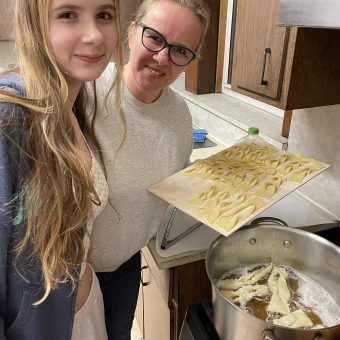 This year, on the Friday after Fat Thursday, instead of frying donuts, high school students and their mothers stood at unconventional silicone and traditional beech wood pastry boards to learn how to make faworki or, if you prefer, Chruściki.
