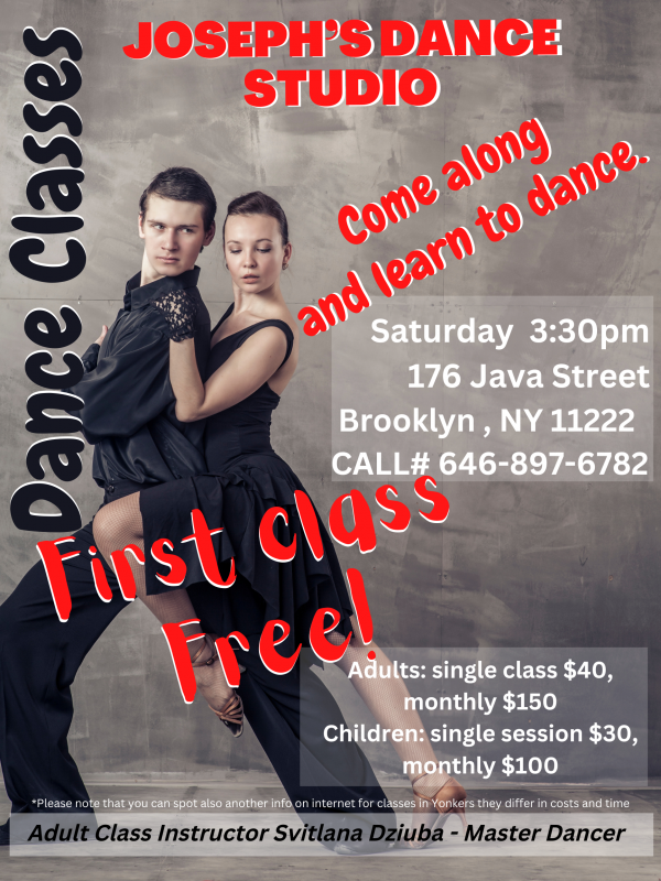 Dance lessons: Saturdays at 3:30PM