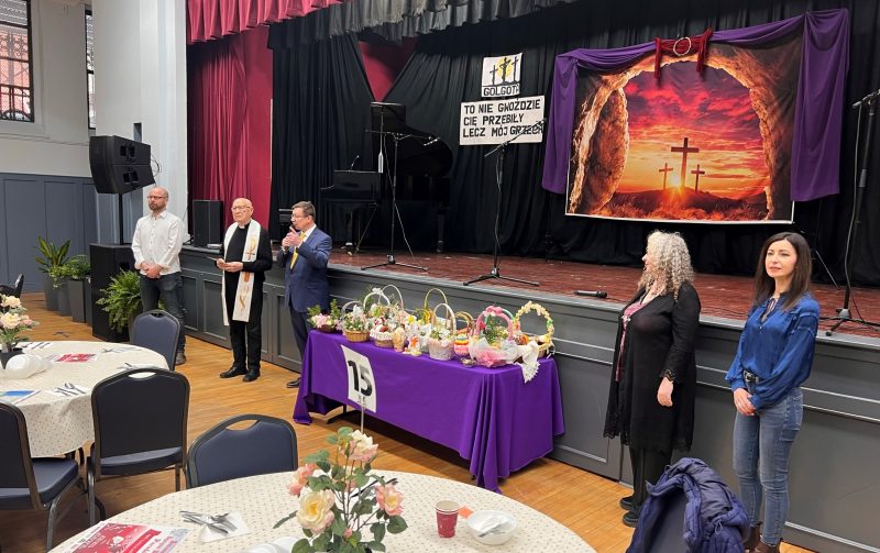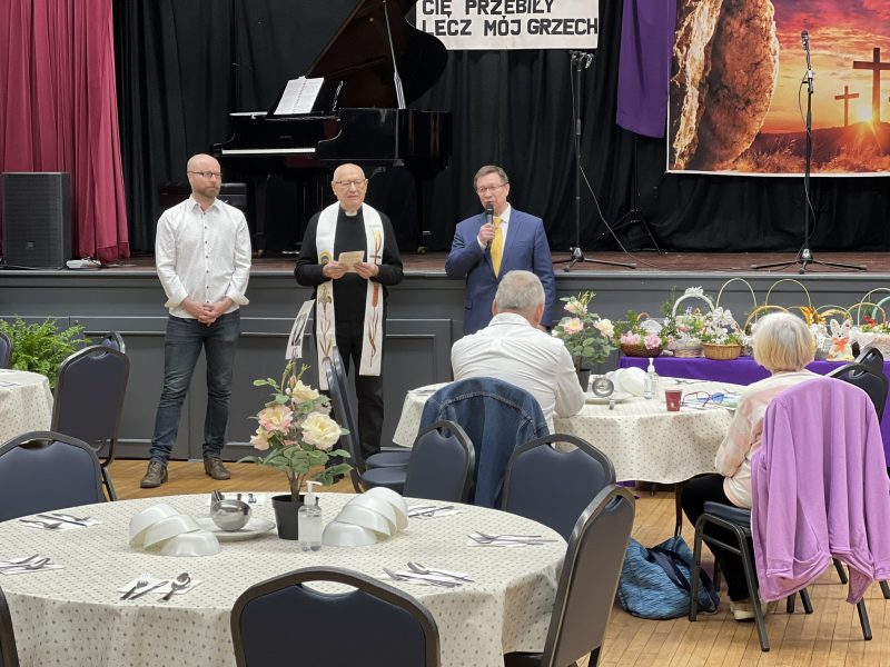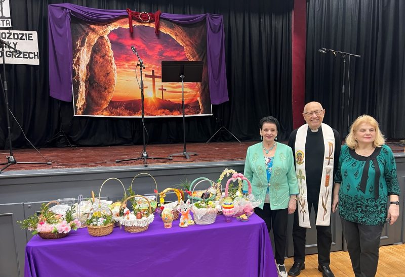 Good Friday at Krakus Senior Center had everyone in the mood for Easter celebration. Polish and Slavic Center Spiritual Guardian Father Joseph Szpilski visited Krakus to bless food brought by Krakus’ members. The choir “Krakus” together with conductor Katarzyna Drucker prepared a moving Lenten performance which touched the hearts of the audience. The president of The Polish and Slavic Center, Marian Żak, together with Krakus’ director Arthur Pustula sent their Easter greeting to all the seniors and employees. Lastly, a competition was held for the best Easter basket and the winners received sweets as awards