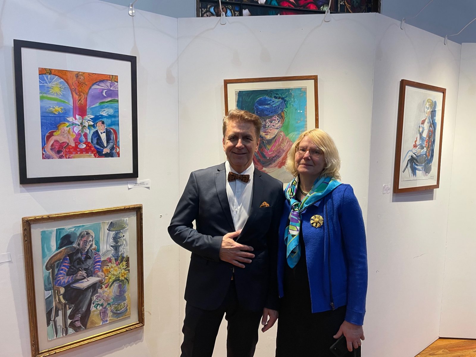 On April 13, the Polish-Slavic Center hosted a concert by Mr. Janusz Smulski and the art exhibition by Ms. Beata Szpura. The event was led by Jakub Polaczyk, an employee of the Polish-Slavic Center, and representatives of the board of directors of the Polish-Slavic Center were also present at the meeting: Marian Żak – president, Bożena Konkiel – secretary and Zbigniew Solarz – treasurer. The gathered guests could admire the paintings of Mrs. Beata Szpura with newly written Polish-English lyrics to the music of Frank Sinatra.