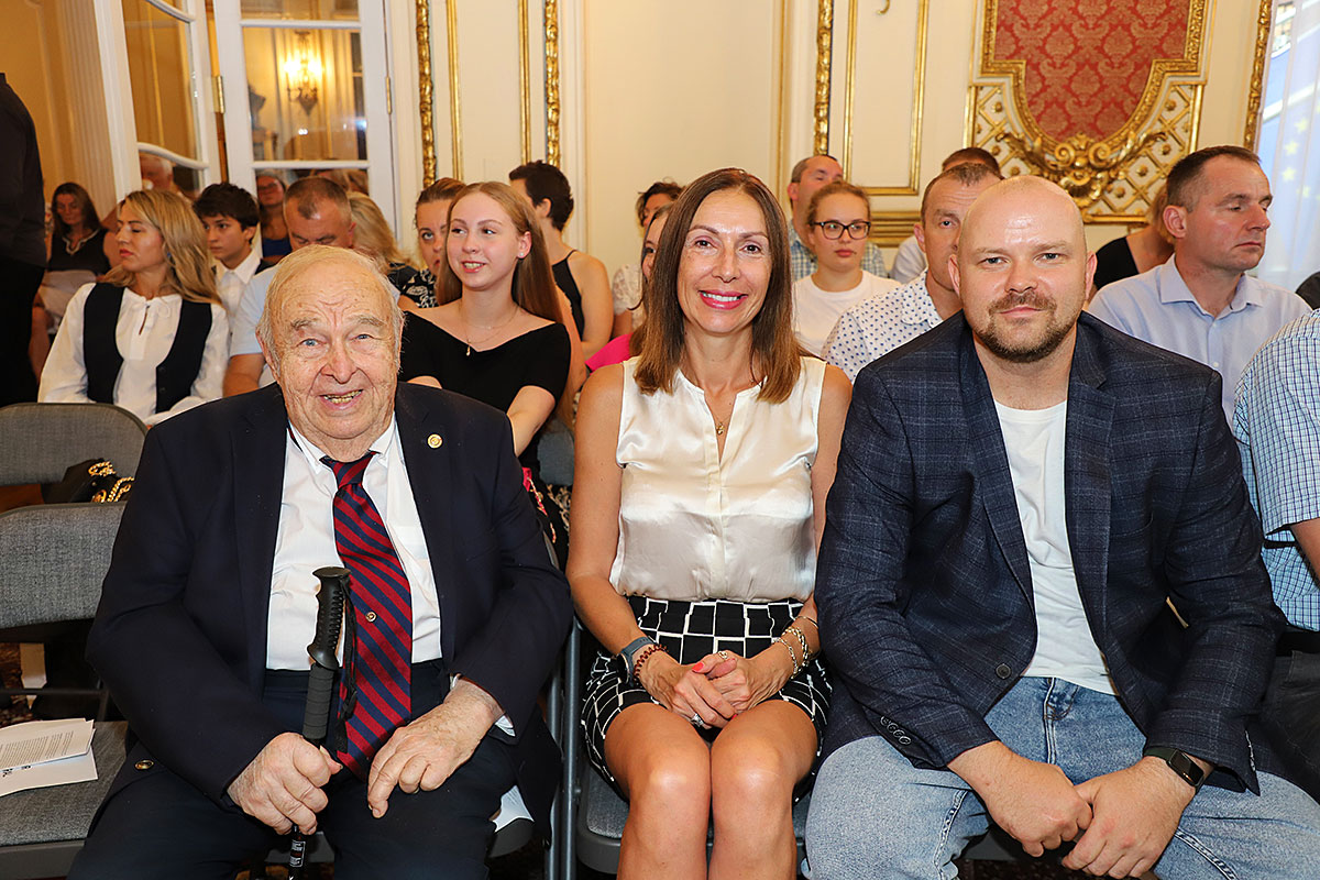 Next, Wojciech Maślanka spoke with Mikołaj Kaczmarek, the colorist of the presented insurgent photos. He talked about the technique of colorizing photos and recalled moving meetings with insurgents who were still alive. The first photo he colored was a girl from the Warsaw Uprising, which he found on the Internet. The girl kneels in the yard, where a cemetery has been made and her brother is buried. The colorist has already received many awards for his patriotic work and social activity to popularize history, including the BohaterOn Award of the Warsaw Insurgents, the ZHP Medal and the Cross of Merit of the Republic of Poland. The conversation was accompanied by an interesting presentation of colorized photos and from the artist’s meetings with insurgents, prepared by Nicola Gabriela Maślanka. Mikołaj Kaczmarek prepared a surprise, he presented colored family photos to Andrzej Rawicz and Janusz Romański, son of insurgent Lt. Roman Romański, commander of the “Żbik” group.