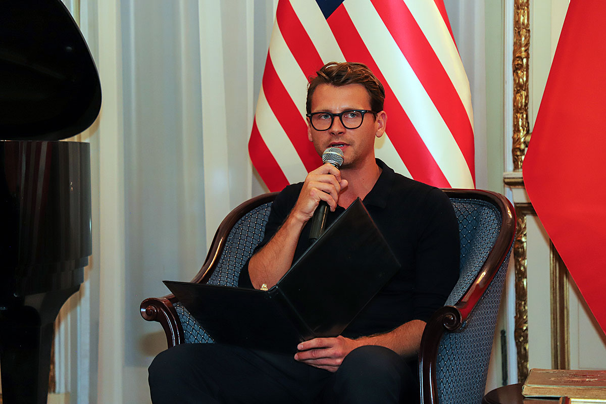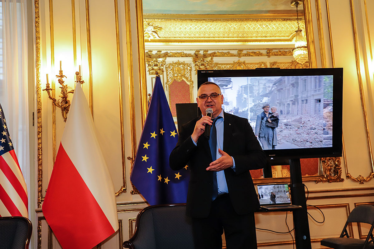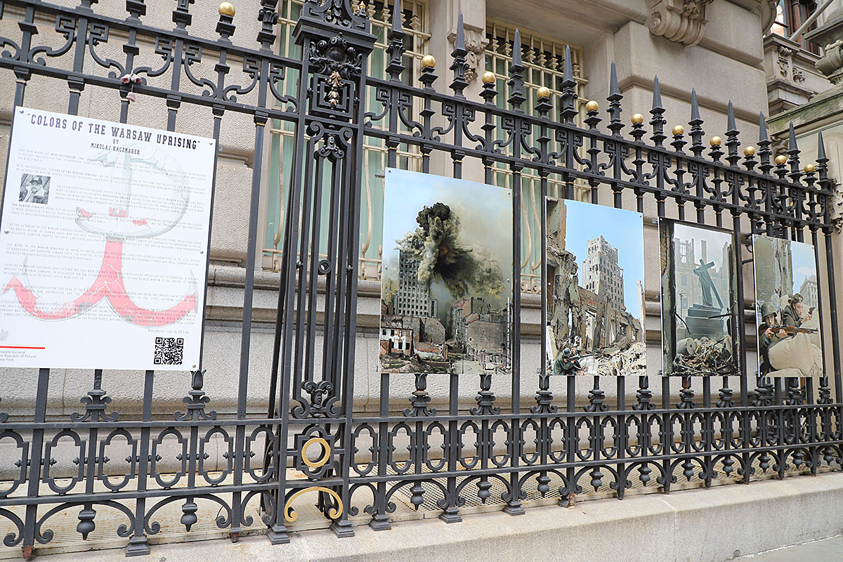 Right from the start, guests could view an exhibition consisting of ten large original colorized photos from the Warsaw Uprising, hung on the fence of the Consulate, which will last for 63 days, until October 3, the day of the fall of the Warsaw Uprising. They will inform New Yorkers about the heroic uprising of the people of Warsaw in 1944. The creator of the colorized photos on display is Mikołaj Kaczmarek, a Polish colorist of photographs from important events in Polish history.