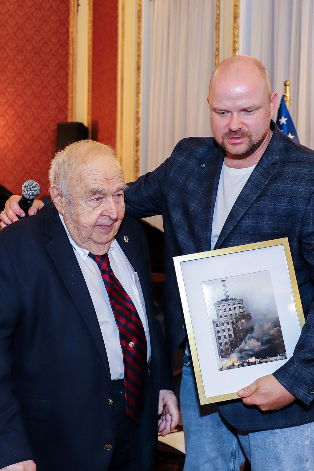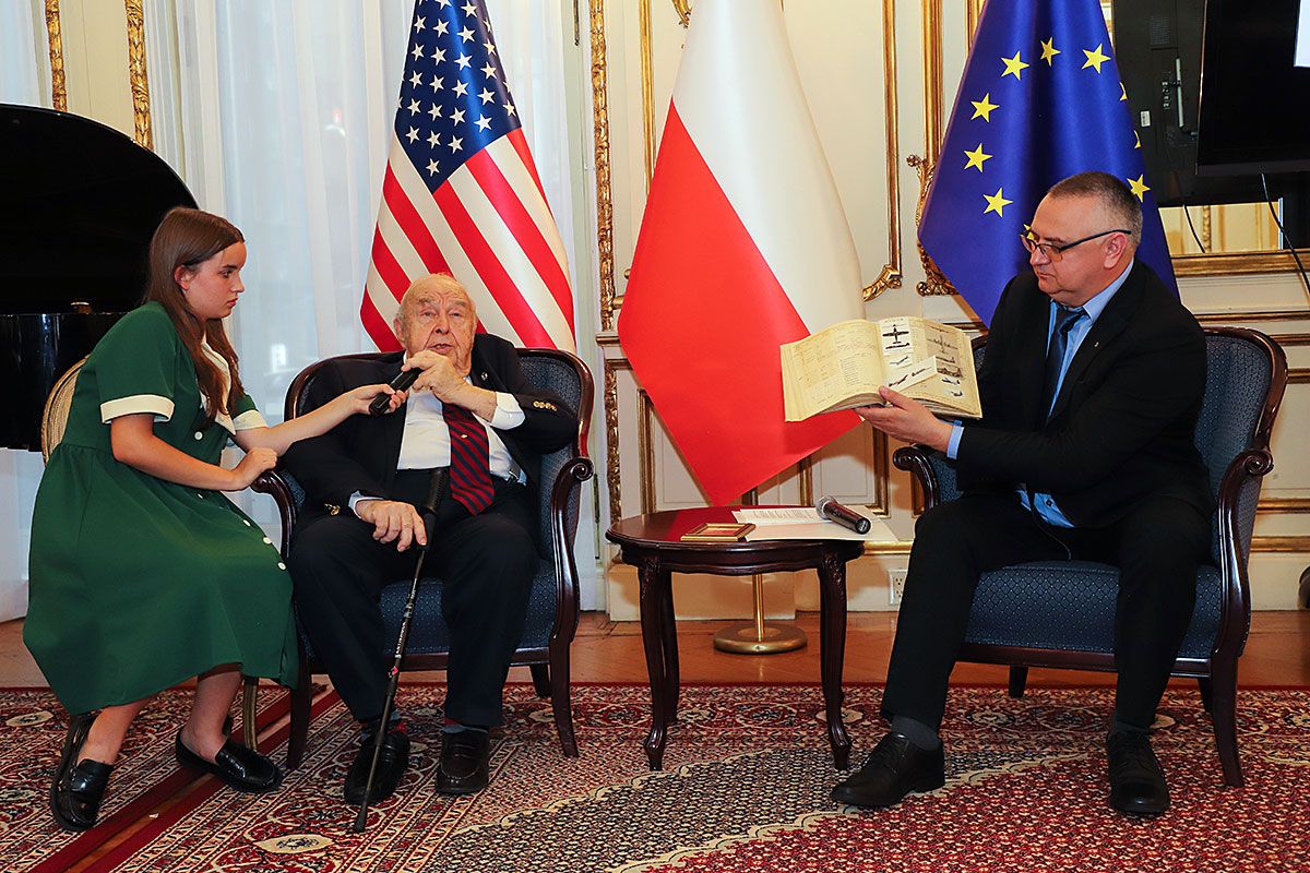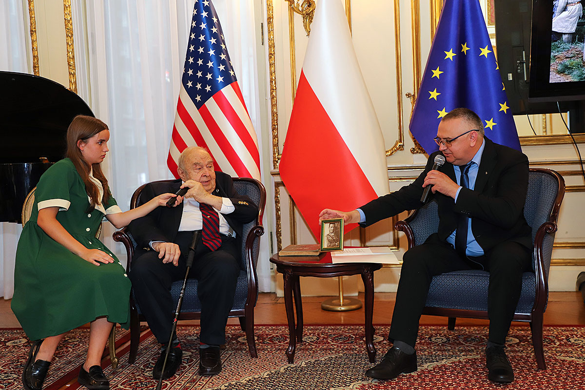 The guests of honor at the ceremony were: Andrzej Rawicz, a Warsaw Uprising participant, and the aforementioned colorist, Mikołaj Kaczmarek, who flew in from Poland especially for the occasion. After the Polish national anthem was sung by Hanna Pogorzelska, this year’s Miss Polonia from Ridgewood, Wojciech Maślanka conducted a conversation with 90-year-old Andrzej Rawicz from Pennsylvania. He talked about his happy childhood before the war, and recalled how, risking his life as a ten-year-old, he distributed a bulletin in Warsaw. He also talked about his family, his mother Krystyna Rawicz-Szabuniewicz, who was active in the Home Army during the war, and his father Józef Rawicz-Szabuniewicz, a Polish and British air force officer, as well as his grandfather Bronisław Ratajczak, who in the first days of the uprising, after conquering the then skyscraper – Prudential, hung a white and red flag on its top. Unfortunately, he died after their tenement house was bombed on September 5, 1944. He also recalled escaping from the train that, together with his grandmother, cousin, aunt, and other insurgents and residents of Warsaw, was sent to the KL Auschwitz concentration camp.