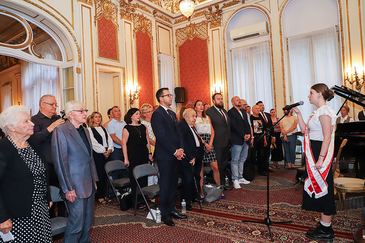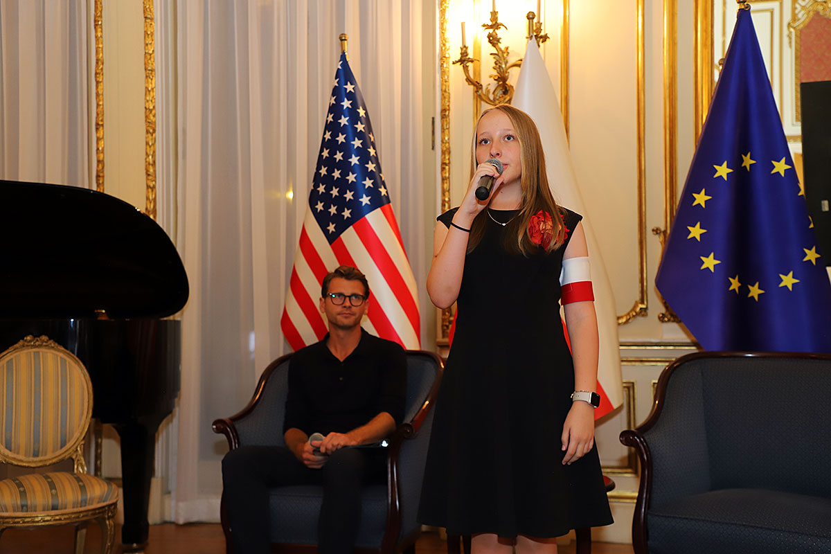 The artistic part featured the Polonia Children’s Choir, founded in 2020, led by Dominik Grzyb, who played the piano, guitar and accordion. The children, dressed in costumes from the 1940s, movedly sang insurgent songs. Michał Jamrożek, who has already won many music competitions and awards, sang “Lullaby from the Ghetto” in a wonderful falsetto. Children from the Polonia orchestra played the accordion, clarinet and xylophone.