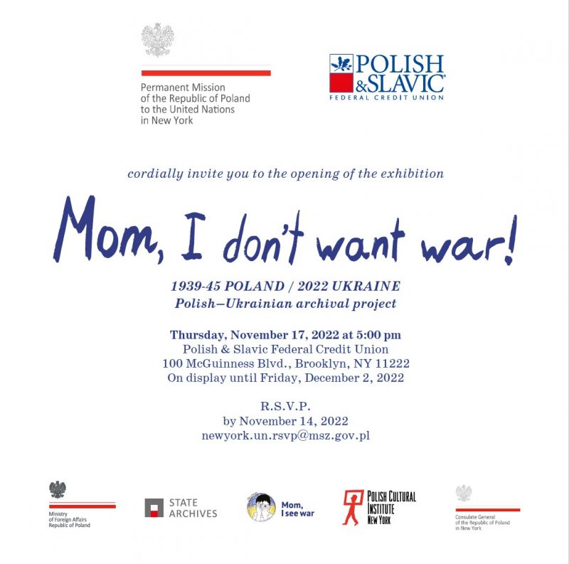 UPCOMING EVENTS Thursday, November 17: Exhibition opening “Mom, I don’t want war!” Posted on November 16, 2022November 16, 2022 by AdminAssist