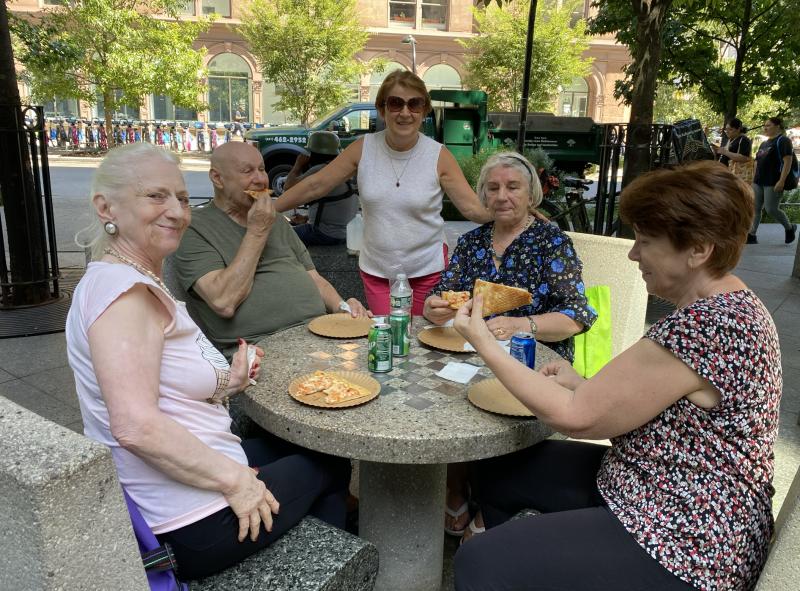 J.P. II SENIOR CENTER Visit to the Pizza Party at the Cooper Square. Posted on August 23, 2023 by AdminAssist August 23rd John Paul 2 Friendship Center had a trip with pizza to the Cooper Square Park.