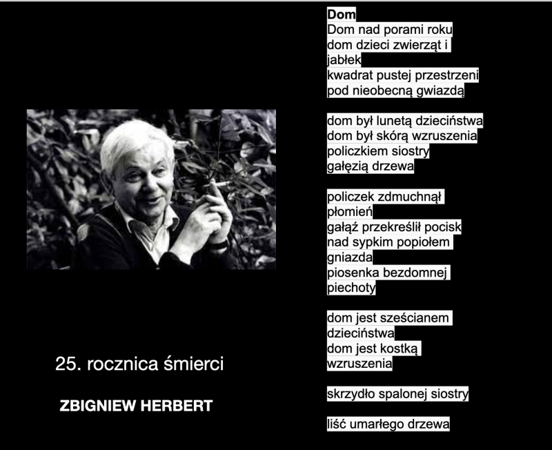 28th of July we celebrated the day with poetry of Zbigniew Herbert who passed away exactly 25 years ago. Movie about the artist: “Obywatel poeta” was presented and poems were read like the one called Dom (Home):
